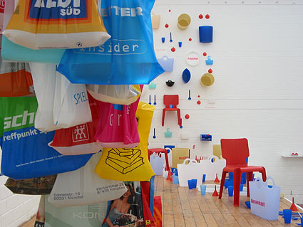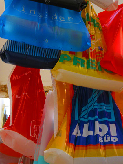 verwendeten Tragetaschen zu überziehen. In der Plastiktragetasche